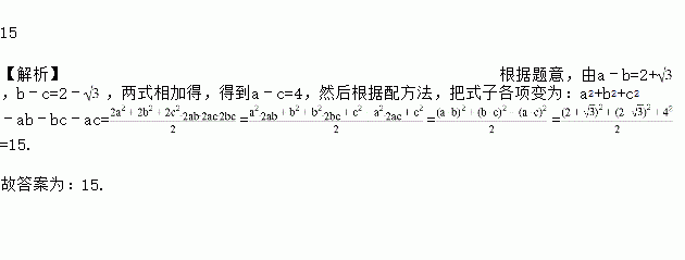 设a﹣b=2+,b﹣c=2﹣,则a2+b2+c2﹣ab﹣ac﹣bc=_____.