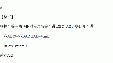 如图,△ABC≌△BAD,如果AB=6cm,BD=5cm,AD=4cm,那么BC=( )