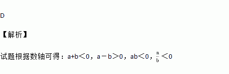 A. a+b>0 B. a-b<0 C. ab>0 D. <0