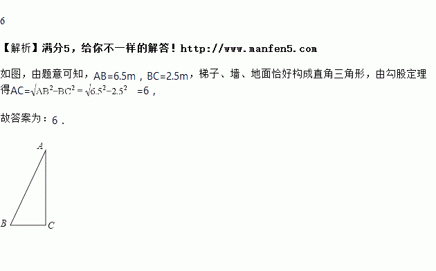 一架6.5米长的梯子斜靠在一竖直的墙上,这时梯子与地面接触点到墙根的距离为2.5米,那么梯子的顶端到墙根的距离是________米.