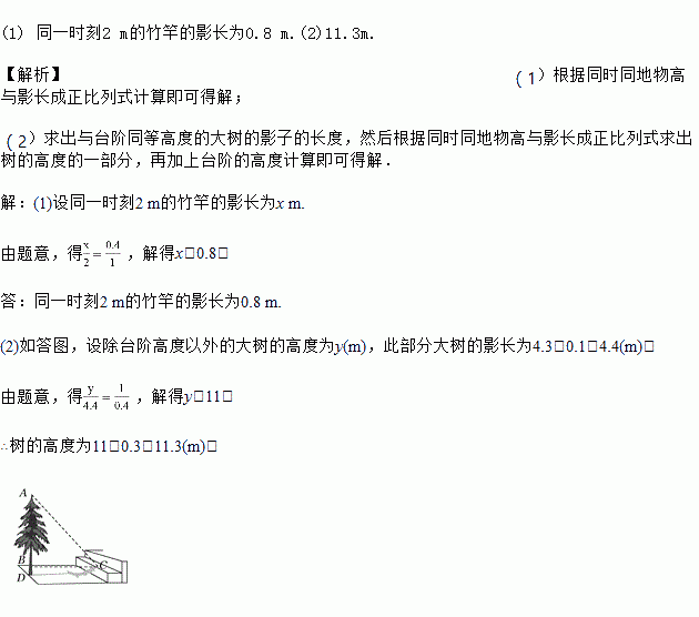 (1)求同一时刻2 m的竹竿的影长;