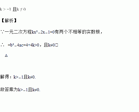 关于x的一元二次方程kx2+2x-1=0有两个不相等的实数根,则k的取值范围是_____.