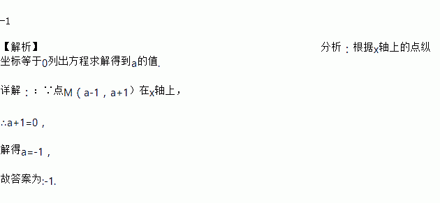 如果点M(a-1,a+1)在x轴上,则a的值为___________.