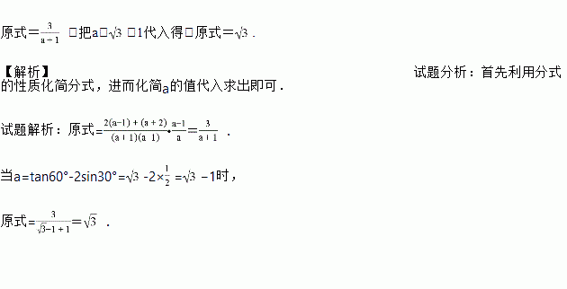 先化简,再求代数式的值,其中a=tan60°-2sin30°.