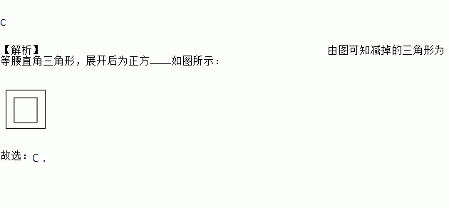 把一个正方形纸片折叠三次后沿虚线剪断①②两部分,则展开①后得到的是( )