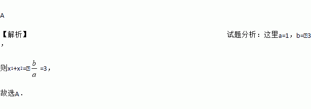A 【解析】试题分析:这里a=1,b=﹣3, 则x1+x2=﹣=3, 故选A.