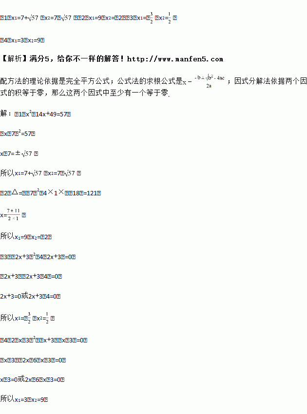 (3)(2x+3)2=4(2x+3)(因式分解法)