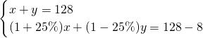 分析:根据题意,可知本题中有两个等量关系:两件成本=128,乙亏损额-甲盈利额=8根据这两个等量关系可列出方程组.