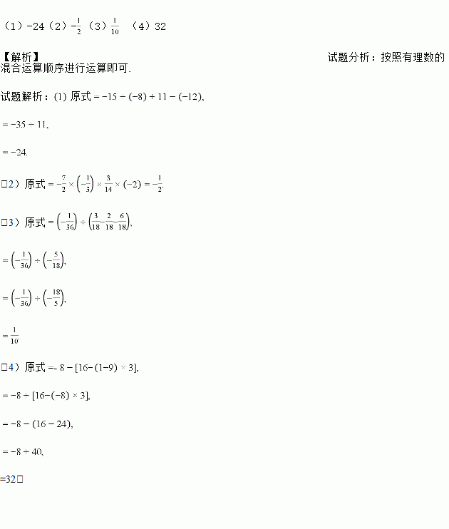 (1)﹣15+(﹣8)﹣(﹣11)﹣12