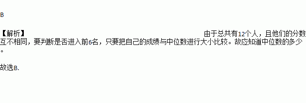 12位参加歌唱比赛的同学的成绩各不相同,按成绩取前6位进入决赛.如果小颖知道了自己的成绩后,要判断自己能否进入决赛,小颖需要知道这12位同学成绩的( )