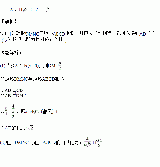 (2)求矩形DMNC与矩形ABCD的相似比.