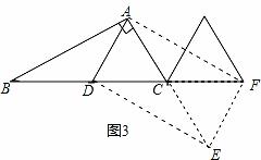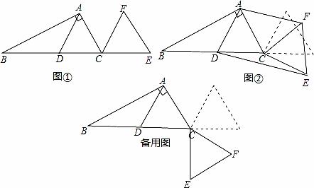在Rt△ABC中,∠BAC=90°,∠B=30°,线段AD是BC边上的中线,如图①,将△ADC沿直线BC平移,使点D与点C重合,得到△FCE;如图②,再将△FCE绕点C顺时针旋转,设旋转角为α(0°<α≤90°),连接AF、DE.