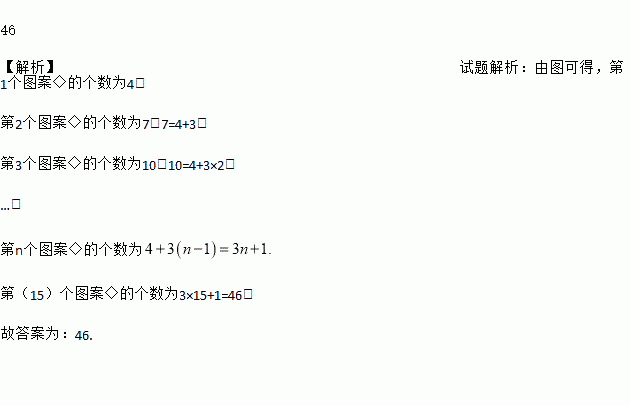 下图是一组有规律的图案,图案(1)是由4个◇组成的,图案(2)是由7个◇组成的,图案(3)是由10个◇组成的,以此类推,则图案(15)是由_____个◇组成的.