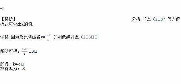 反比例函数y=的图象经过点(2,3),则k=___________.