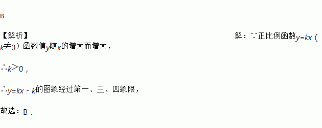 正比例函数y=kx(k≠0)函数值y随x的增大而增大,则y=kx﹣k的图象大致是( )