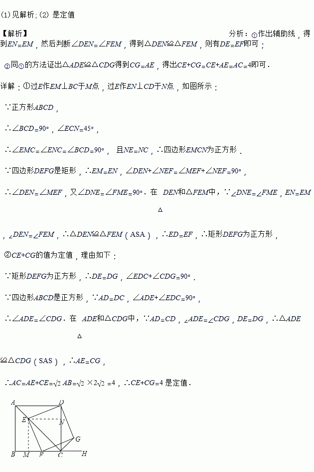②探究:CE+CG的值是否为定值?若是,请求出这个定值;若不是,请说明理由.