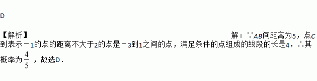如图,A、B是数轴上的两点,在线段AB上任取一点C,则点C到表示-1的点的距离不大于2的概率是( )