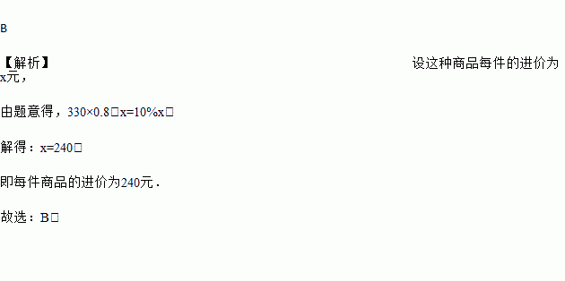 某种商品每件的标价是330元,按标价的八折销售时,仍可获利10%,则这种商品每件的进价为( )
