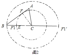 (2)如图2,过C作CF⊥AB于F,以C为圆心CF为半径画圆交BC于F1,EF1有最小值,![]()