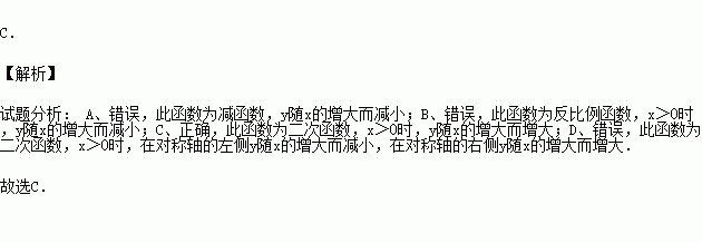 下列四个函数图象中,当x>0时,y随x的增大而增大的是( )