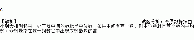 C 【解析】试题分析:将原数据按由小到大排列起来,处于最中间的数就是中位数,如果中间有两个数,则中位数就是两个数的平均数;众数是指在这一组数据中出现次数最多的数.
