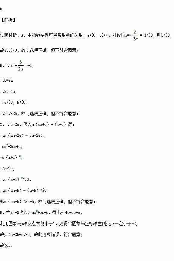 已知二次函数y=ax2+bx+c(a≠0)的图象如图所示,下列结论错误的是( )