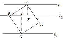 14.分析 画出L1到L2,L2到L3的距离,分别交L2,L3于E,F,通过证明△ABE≌△BCF,得出BF=AE,再由勾股定理即可得出结论.