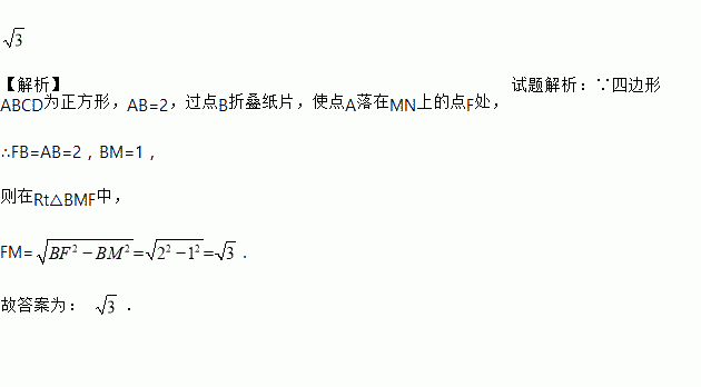 如图,把正方形纸片ABCD沿对边中点所在的直线对折后展开,折痕为MN,再过点B折叠纸片,使点A落在MN上的点F处,折痕为BE.若AB的长为2,则FM的长为___.