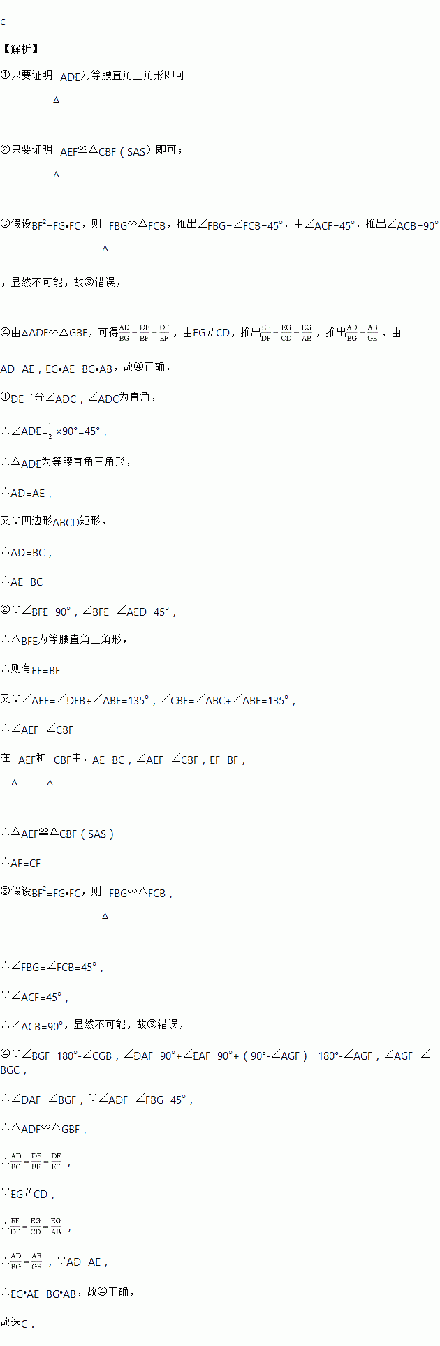 如图,在矩形ABCD中,∠ADC的平分线与AB交于E,点F在DE的延长线上,∠BFE=90°,连接AF、CF,CF与AB交于G.有以下结论: