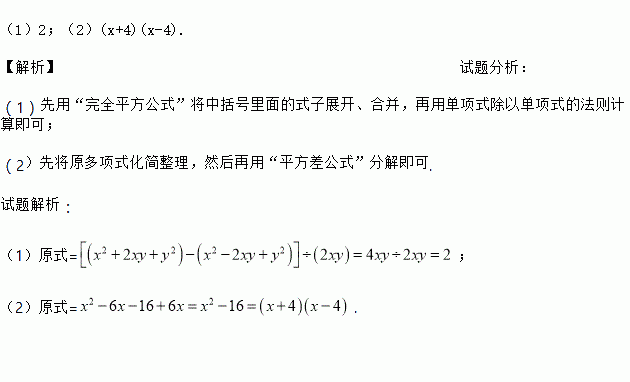 (1)计算:[(x+y)2-(x-y)2]÷(2xy).