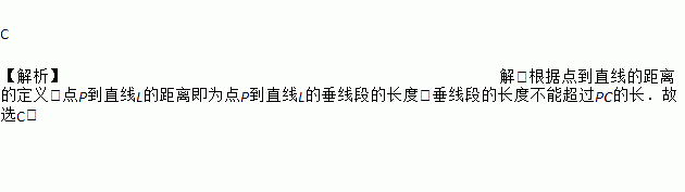 则点P到直线l的距离 ( )