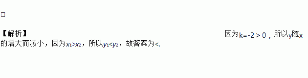 已知点A(x1,y1),B(x2,y2)是一次函数y=-2x+5图象上的两点,当x1>x2时,y1________y2(填“>”“=”或“<”).