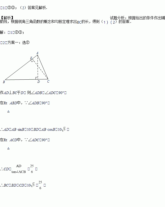 (2)在(1)的答案中,选择一个作为条件,画出示意图,求BC的长.