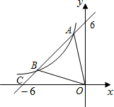 分析:(1)将(-6,0)与(0,6)代入一次函数解析式y=kx+b中,求出k与b的值,确定出一次函数解析式,将B的横坐标代入一次函数解析式中求出y的值,确定出B的坐标,将B的坐标代入反比例解析式中求出k′的值,即可确定出反比例解析式;