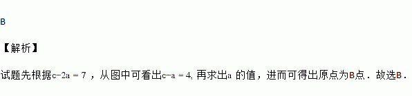 已知如图:数轴上A、B、C、D四点对应的有理数分别是整数a、b、c、d,且有c-2a=7,则原点应是( )
