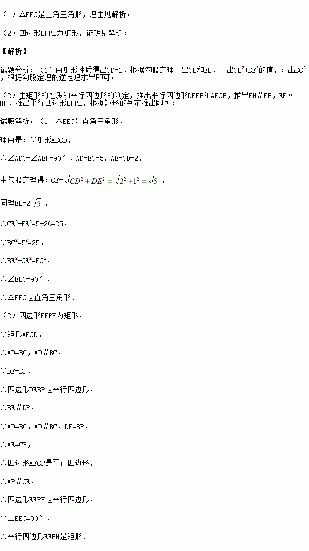 (本题8分)如图,矩形ABCD中,AB=2,BC=5,E、P分别在AD、BC上,且DE=BP=1.