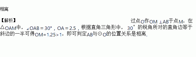如图,⊙O的半径为1,OA=2.5,∠OAB=30°,则AB与⊙O的位置关系是______.