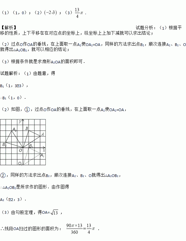 (1)将△AOB向下平移3个单位后得到△A1O1B1,则点B1的坐标为 ;