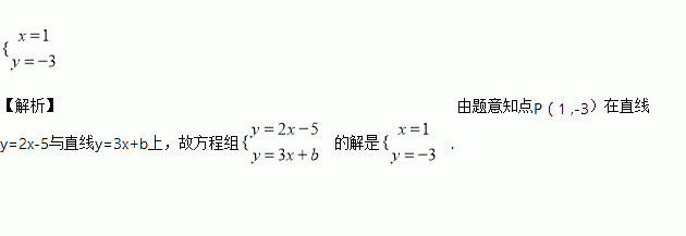 一次函数y=2x﹣5与y=3x+b的图象的交点为P(1,﹣3),方程组的解为__
