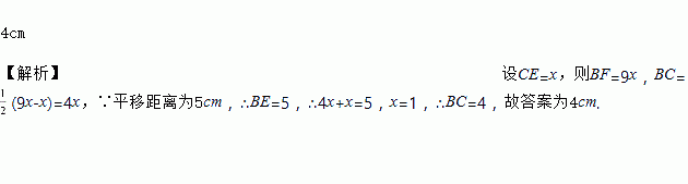 如图,将三角形ABC沿BC方向平移5cm得到三角形DEF,若BF=9CE,则BC的长为__________.
