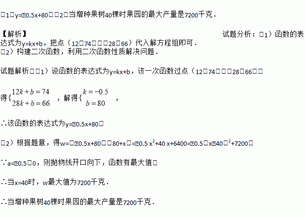 某片果园有果树80棵,现准备多种一些果树提高产量,但是如果多种树,那么树之间的距离和每棵树所受光照就会减少,单棵树的产量随之降低.若该果园每棵果树产果y(千克),增种果树