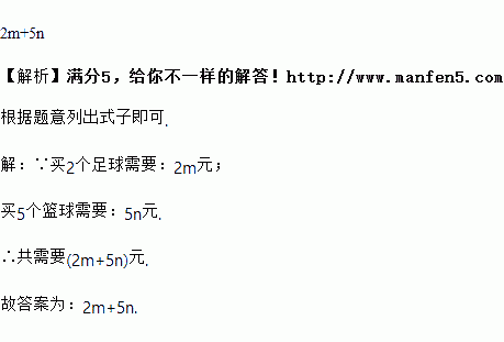 买一个足球要元,买一个篮球要元,则买2个足球、5个篮球共需要_____元.