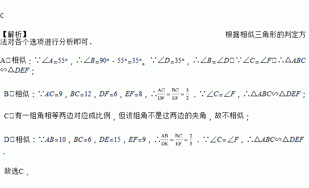 在Rt△ABC和Rt△DEF中,∠C=∠F=90°,下列条件中不能判定这两个三角形相似的是( )