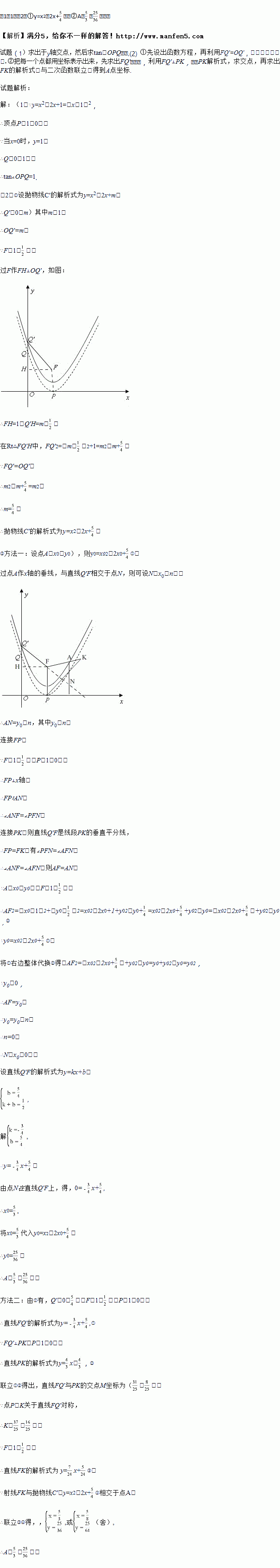 (2)将抛物线C向上平移得到抛物线C′,点Q平移后的对应点为Q′,且FQ′=OQ′.
