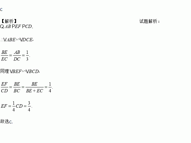 如图,已知AB、CD、EF都与BD垂直,垂足分别是B、D、F,且AB=1,CD=3,那么EF的长是( )