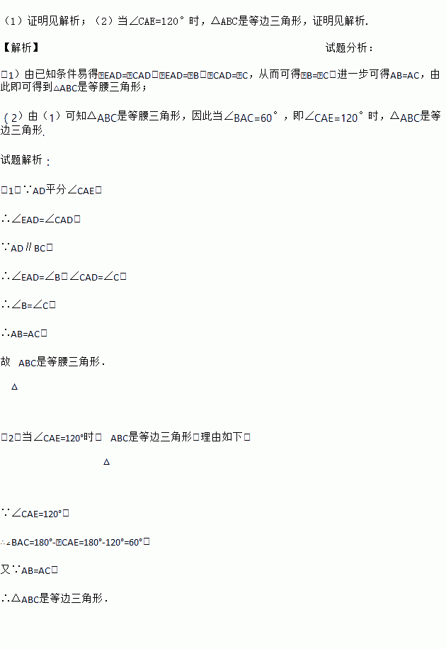 如图,已知:AD平分∠CAE,AD∥BC.