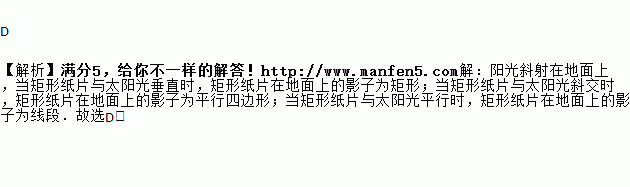 如果阳光斜射在地面上,一张矩形纸片在地面上的影子不可能是( )