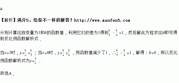 对于反比例函数,当自变量的值从增加到时,函数值减少了,则函数的解析式为( )