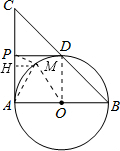 分析:作∠AOM=60°,使OM交于M,则AM=2,即M为所求,连接PM,作MH⊥AC于H,连接OD,利用直角三角形的性质和圆的切线性质和切线长定理即可判定四边形PDOA为正方形,所以AP=AO=2,再利用勾股定理即可求出PM的值.