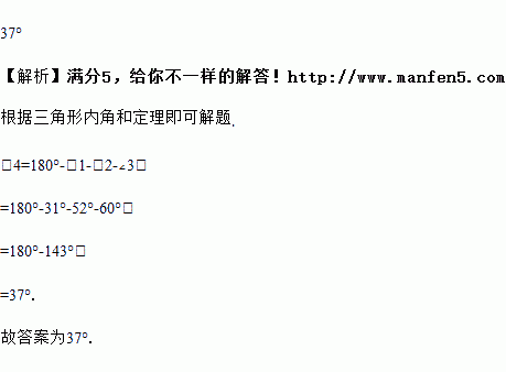 如图,∠1=31°,∠2=52°,∠3=60°,则∠4的度数为_______.